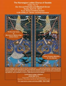 The Norwegian Ladies Chorus of Seattle is planning their annual fishcake and meatball fundraiser dinner. The event will be held on Sunday, April 14, at Leif Erikson Lodge (2245 NW 57th St, Seattle). A social and silent auction will kick off the event at 4 p.m. and dinner and entertainment will continue from 5:30 p.m.