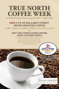 The folks at Ballard Great Harvest (2218 NW Market St) have teamed up with Ballard-based micro-roaster True North Coffee to host “True North Coffee Week” which is being held until this Sunday, April 28.