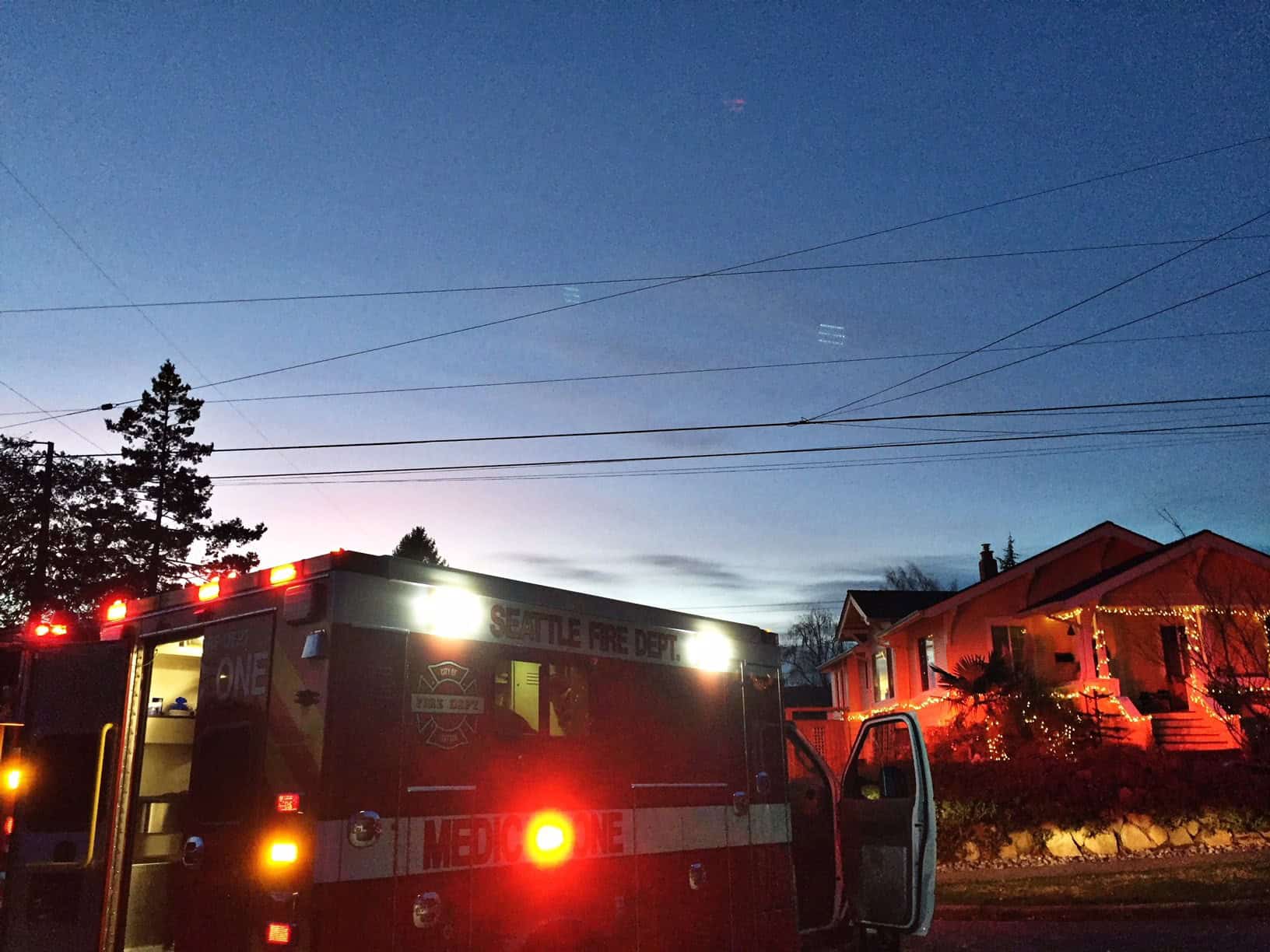 A woman came out of her corner house while I talked to the medic dispatcher. The man’s eyes closed.