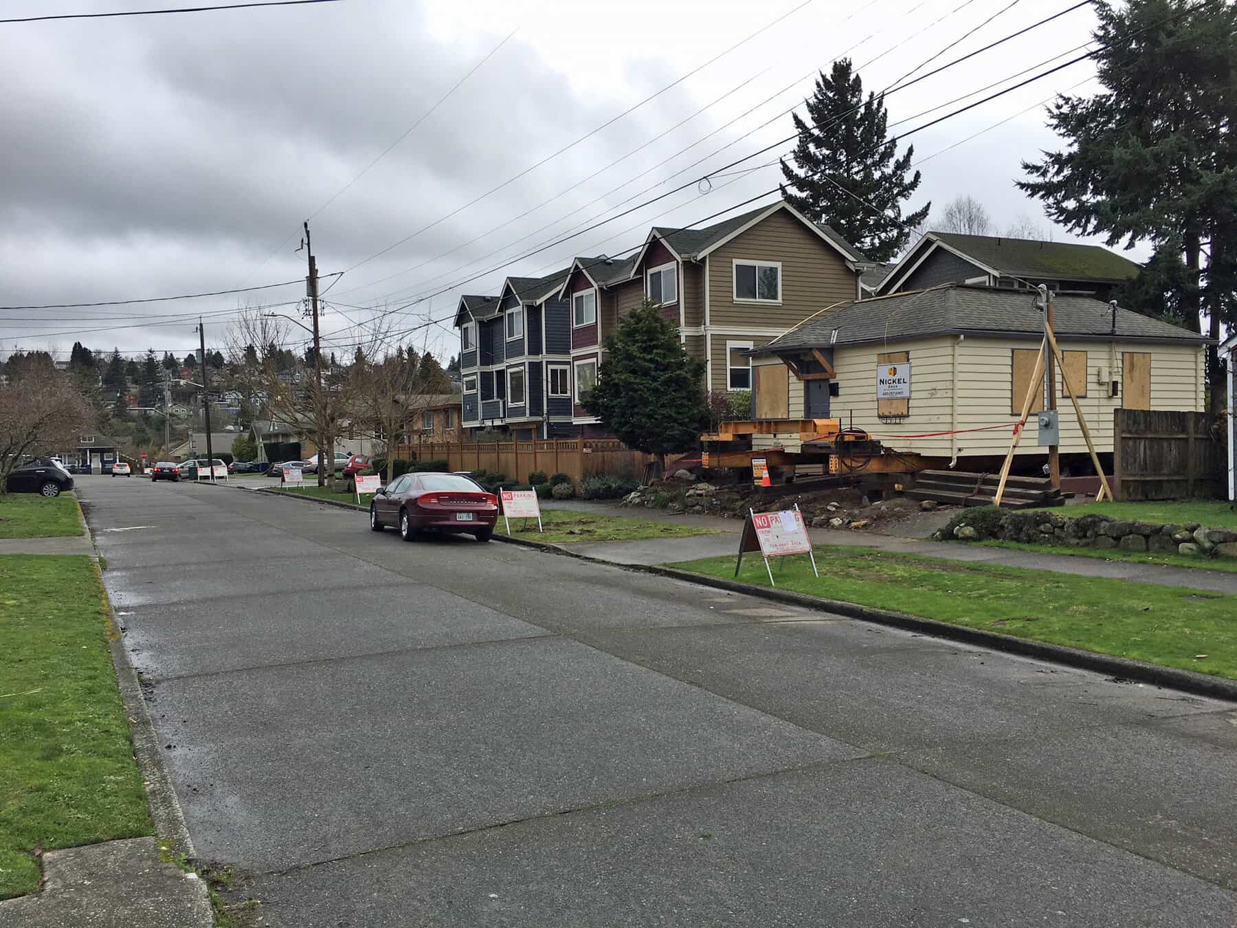 The big move for a small Ballard bungalow is happening late tonight (Saturday). The city has put up “no parking” signs along the narrow sections of the route.
