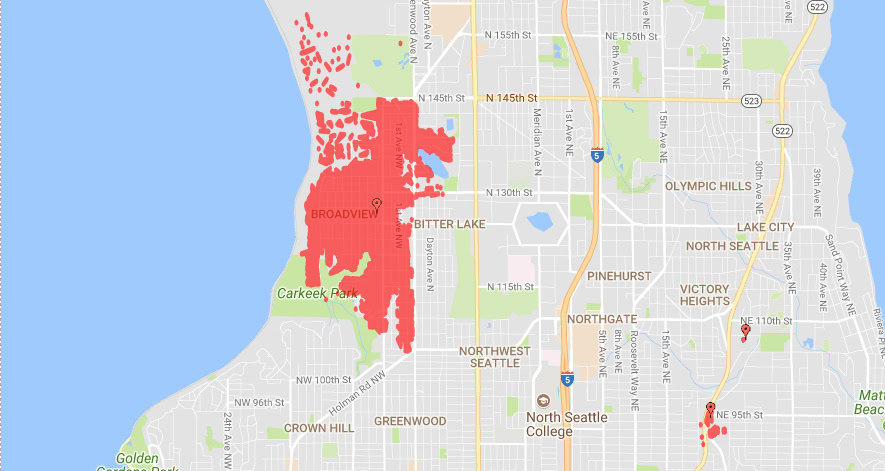 The areas impacted include Broadview and parts of Bitter Lake. Here’s the outage map.