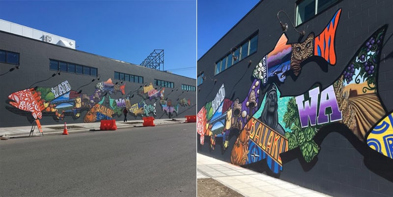 “I credit the designers for recognizing this beautiful new construction desperately needed some personality on the west facing wall,” Wakuda Fischer told My Ballard. “I used to live nearby and know the area well — when I was asked to propose a design, it was no problem creating a mural that I felt would resonate with the neighborhood.”