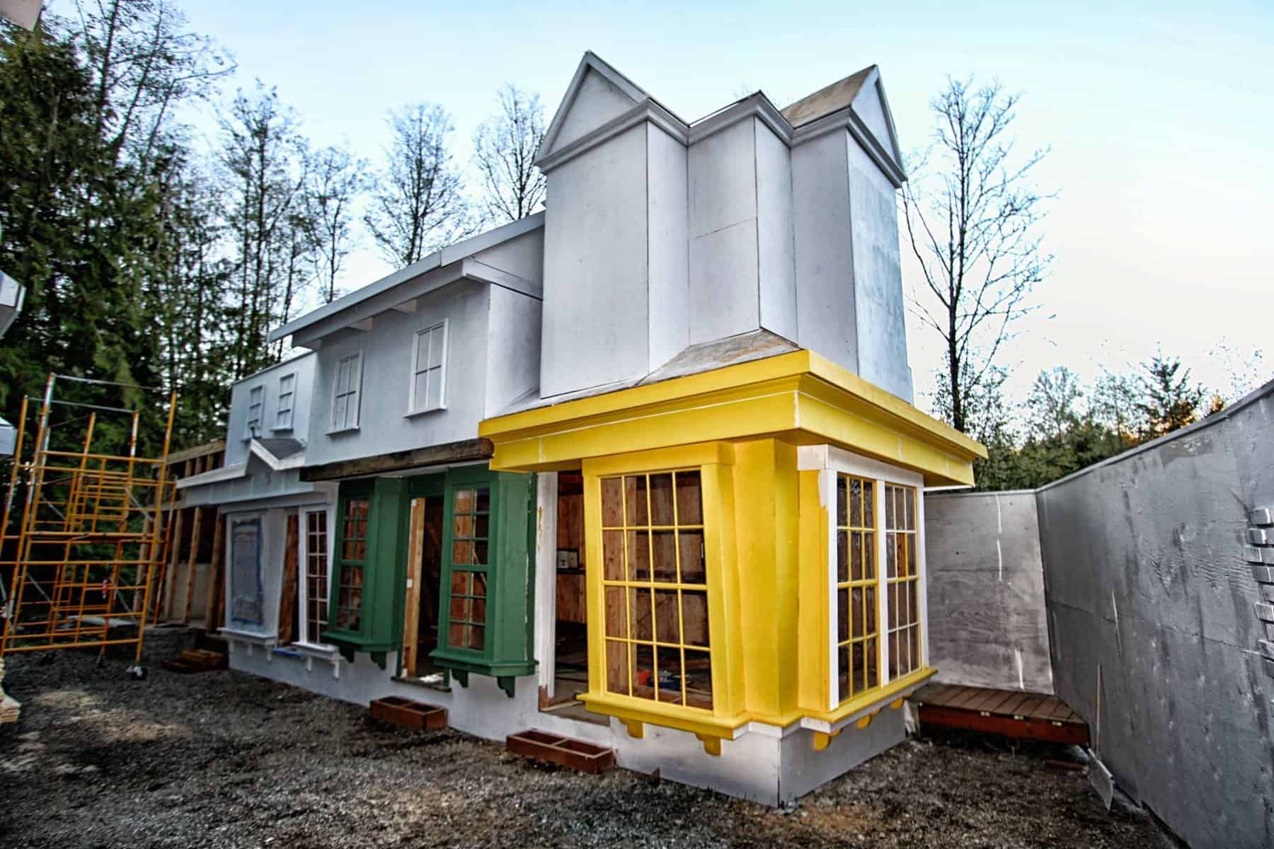 They started the build in April, which consists of 14 shop exteriors — more than double what he had in his driveway in Ballard. They’re building out the shop interiors as well, and even constructing The Leaky Cauldron, with a real fireplace and rooms to sleep in, Chambers says. There will also be a Gringotts Bank Playhouse and Weasley’s Wizard Wheezes.