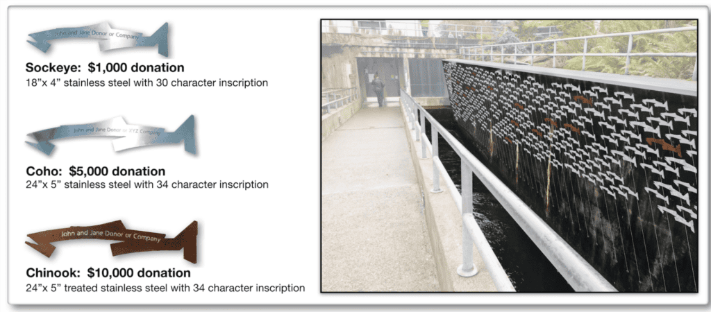The donations are a bit spendy; the first tier is $1000 and is the “Sockeye”, which will be made from stainless steel at 18-inch by 4-inch with a 30-character inscription. The second tier is the “Coho”, at $5000 and 24-inch by 5-inch with a 34-character inscription. The top tier is $10,000: the “Chinook”, a treated stainless steel 24-inch by 5-inch cut-out and also with a 34-character inscription. Deline tells My Ballard that they already had donations in all three categories before publicizing the fundraiser.