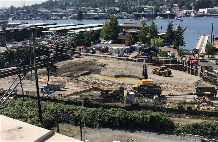 At the Ballard worksite (5300 24th Ave NW), the removal of contaminated soil will help protect water quality in the canal as crews begin to construct a 100-foot-deep, 90-foot-wide shaft for the tunnel boring machine’s entry point. The site will eventually be the permanent home of the Ballard Pump Station, which will house the equipment needed to send wastewater to West Point.