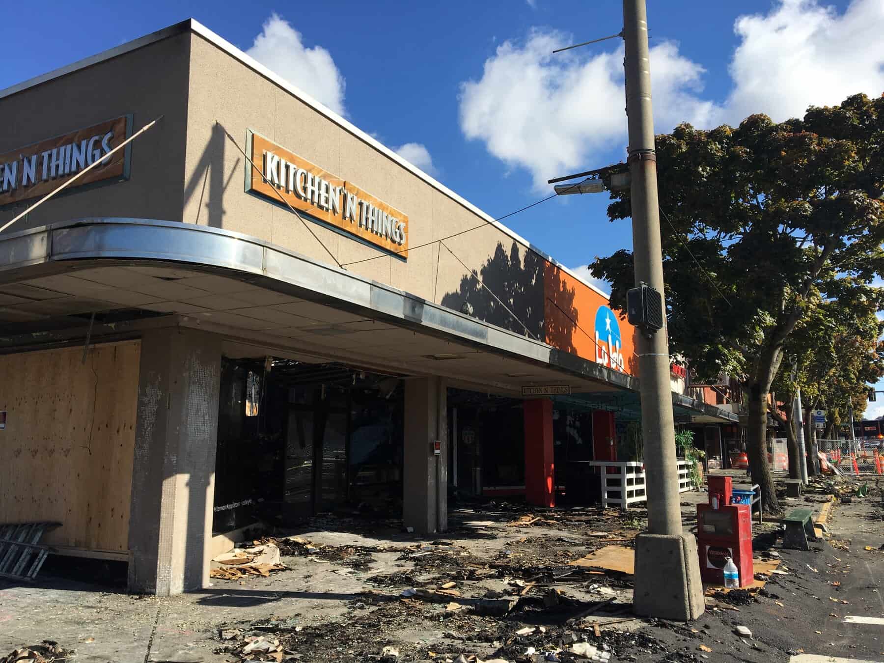 The sidewalk is currently blocked along the storefronts — there’s still a good amount of debris in front of the building. So far, the loss has been estimated at $3 million.