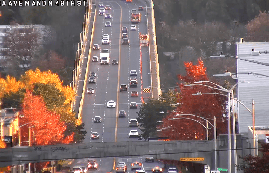 Due to steel deterioration found on the Aurora Bridge, one southbound lane has been closed until further notice.