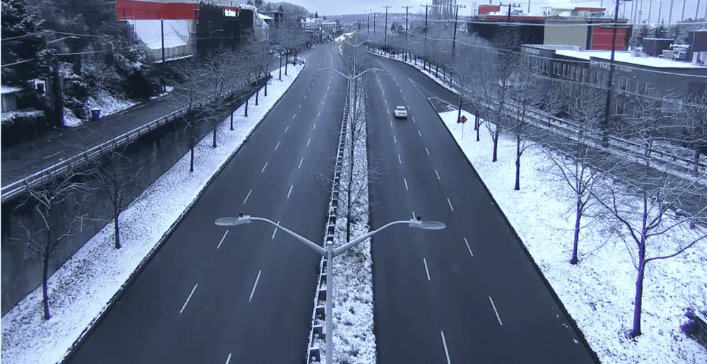 Updated: After a dusting of snow overnight, Seattle Public Schools are starting two hours late today to allow for potentially icy roads. Ballard-area traffic cameras show traffic appears to be moving normally this morning. Here’s a camera near Ballard High: