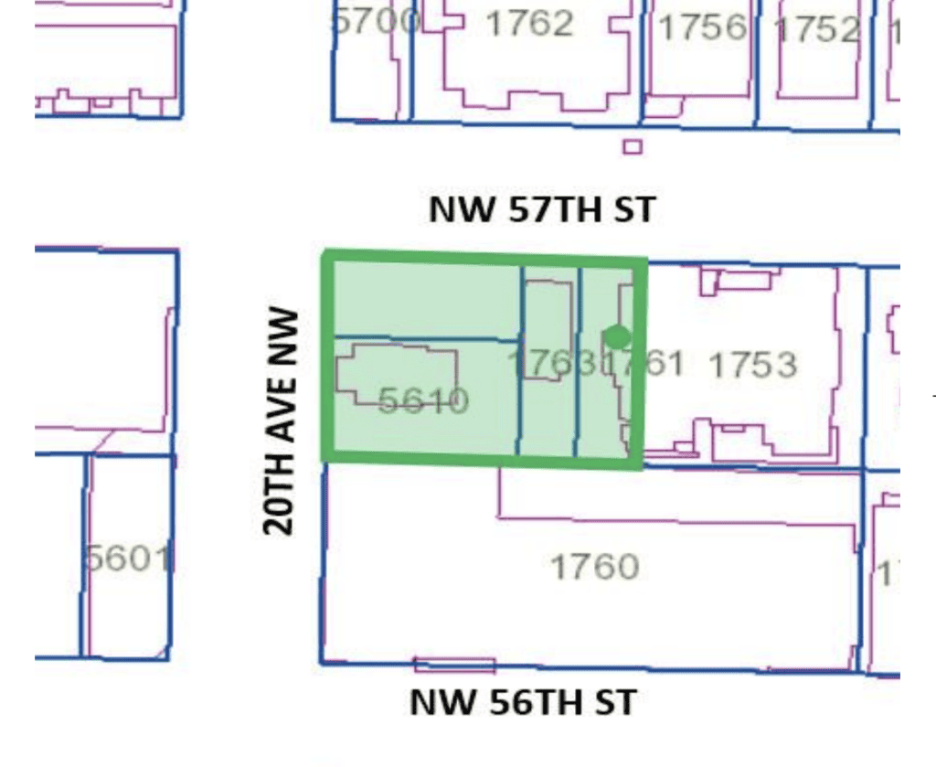 The two houses at 1761 and 1763 NW 57th St (built in 1900 and 1901), plus the Jonsson Law Firm building at 5610 20th Ave NW sold almost a year ago for $5.9 million*. Parking for 59 vehicles is in the plans.