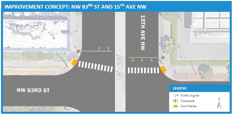 There will be a new crosswalk at the intersection of 15th Ave NW and NW 83rd St, and the City is asking for feedback on the project concept.
