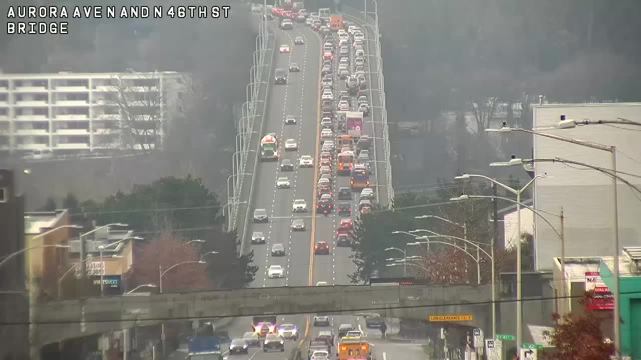 Original: An accident has closed the southbound lanes of Aurora Ave N at Ward St, as firefighters work to extricate a person trapped in their vehicle.