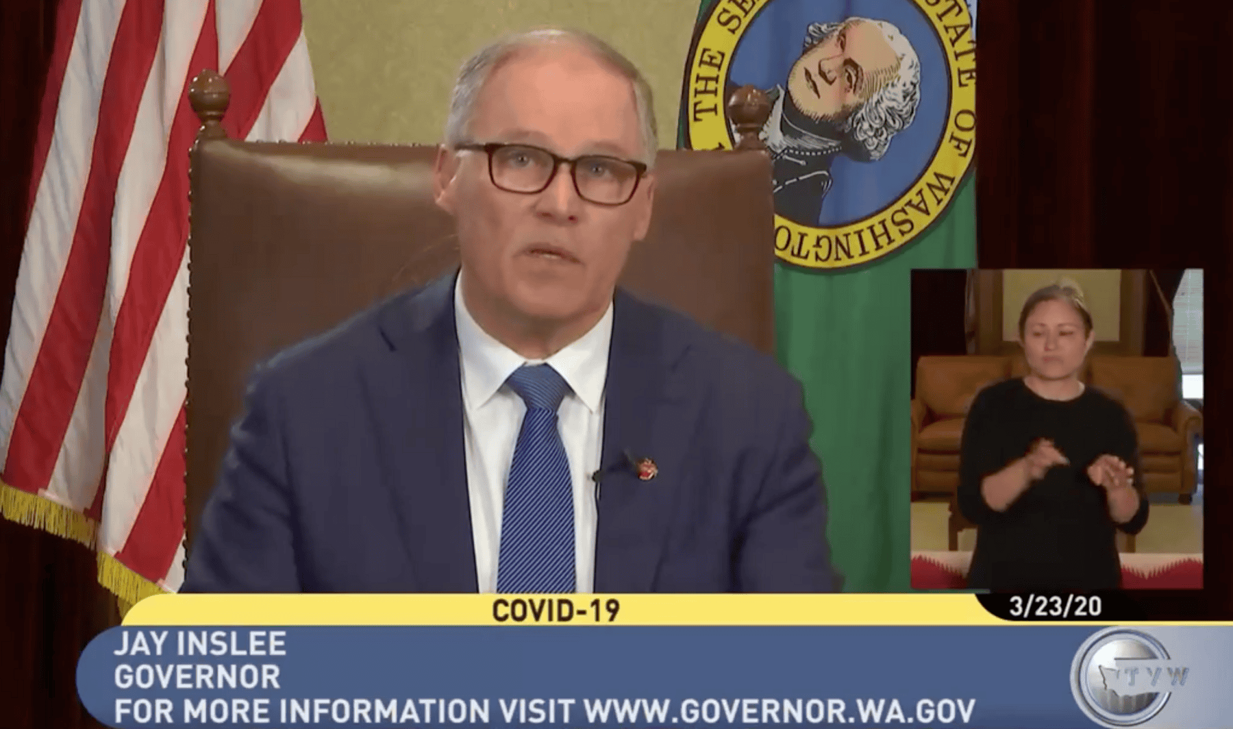 Inslee said the mandate is enforceable by law. “It’s time to hunker down in order to win this fight,” Inslee said in his broadcast.