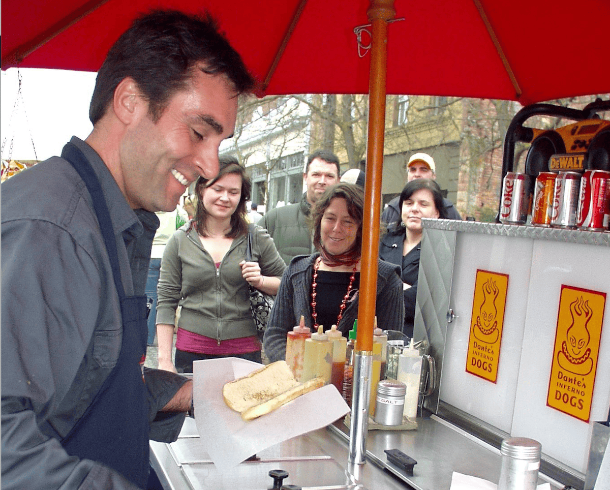 Dante’s Inferno Dogs relies primarily on catering events, which means business has essentially stopped altogether with the COVID-19 stay-home mandate. Owner Dante Rivera has had to lay off his staff of five, and is back to running a one-man show. He says that unfortunately, take-out isn’t an option for his business: “We aren’t set up for that,” Rivera says. “Our price point is minimal—we rely on volume.”