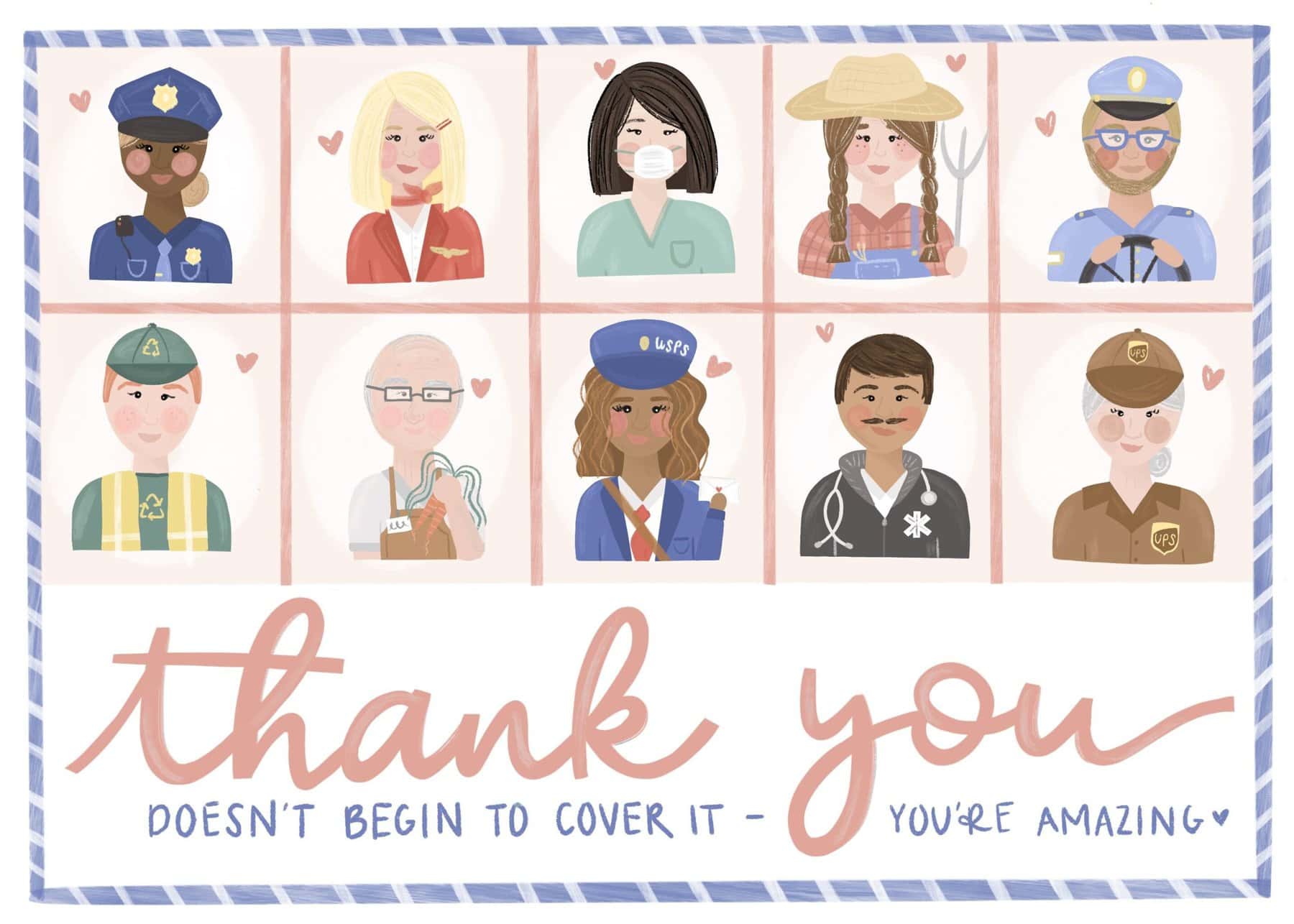 Her first postcard design was of several pairs of people encircled by a six-foot-long tape measure in the shape of a heart with the message, “Sending you a socially distanced hug and so much love.” The messages grew beyond that theme, and she now has several designs to help celebrate birthdays, honor healthcare workers, and most recently, Mother’s Day.