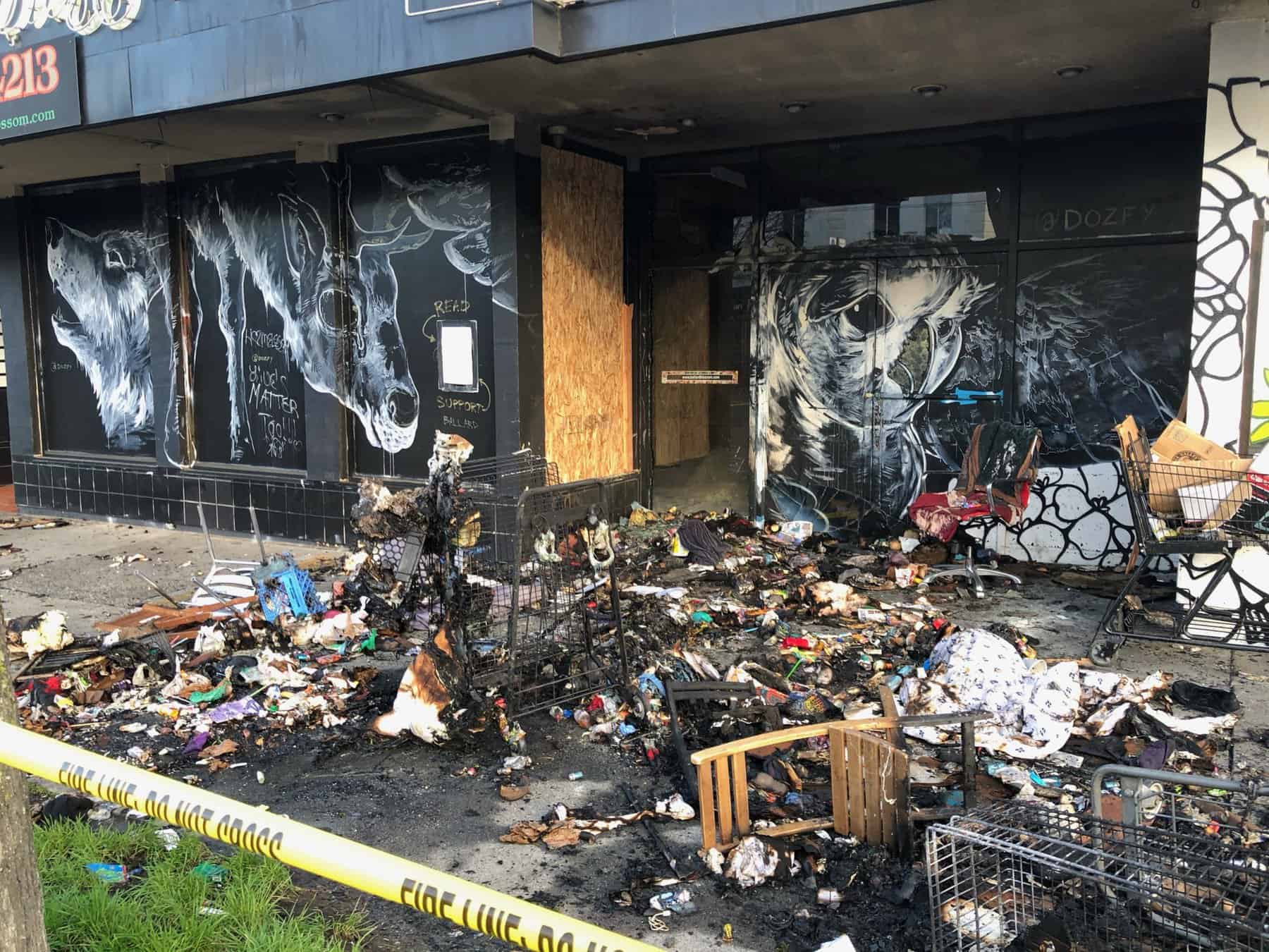 This is the second fire at the Ballard Blossom since it’s been vacant; in December 2019, a fire was started next to the back of the building near the parking lot.