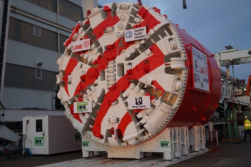 The tunnel boring machine is being pieced together in Ballard—SPU has called for name submissions to give the machine a name. Over the next few weeks, SPU crews will continue assembling the machine and preparing the shaft and site, which includes paving and secant pile work. Actual tunneling operations will begin this summer, but in the meantime, you can expect the following: