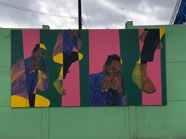 The artwork project is known as FLOW, launched by he Office of Arts and Culture and SPU. The installations make use of temporary construction walls and fences as part of the Ship Canal Water Quality Project. The latest round of artists’ work will be on display until August.