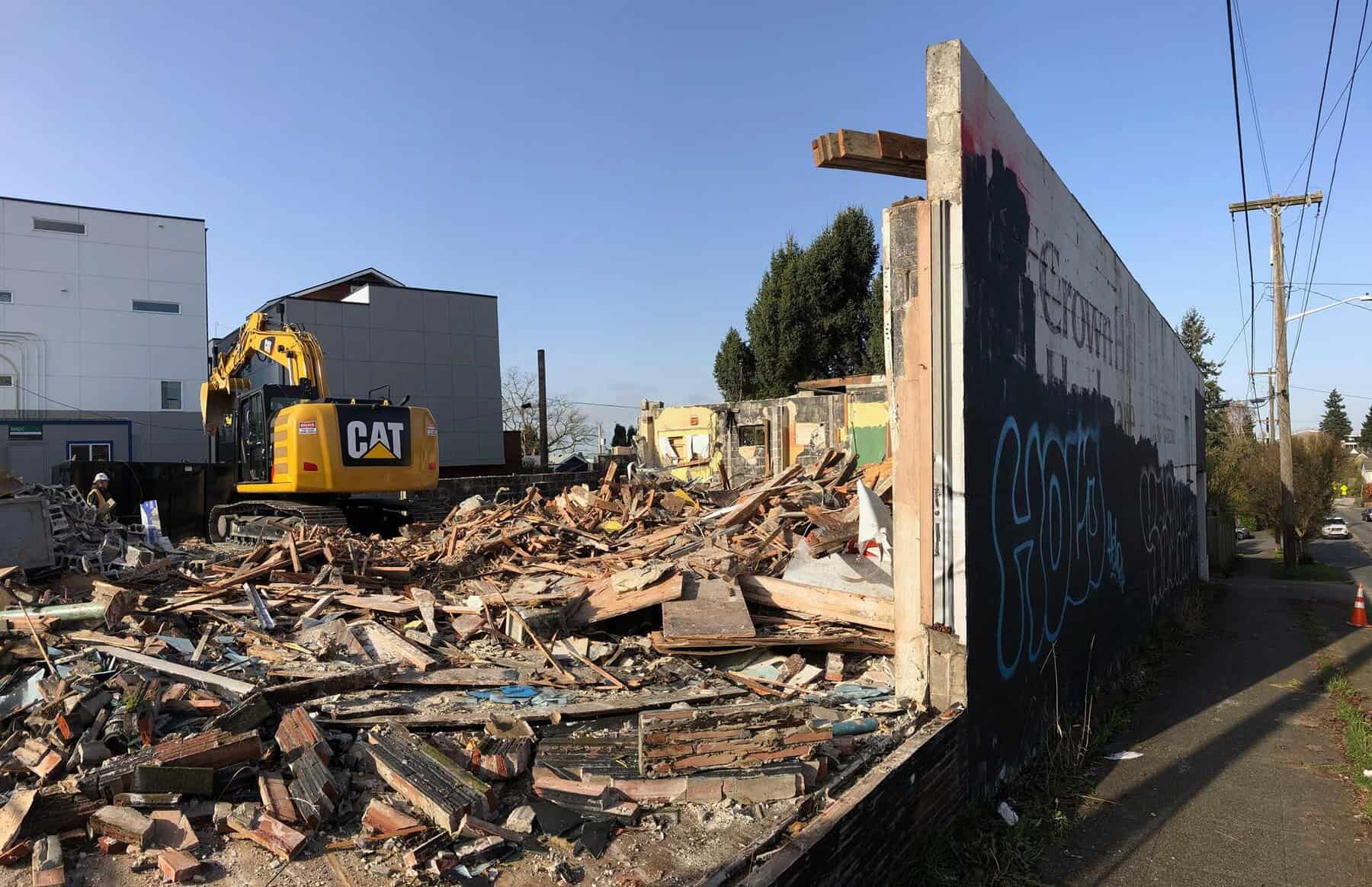 Ballard resident and GeekWire reporter Kurt Schlosser saw the demolition in action and shared the below photos in the My Ballard Group.