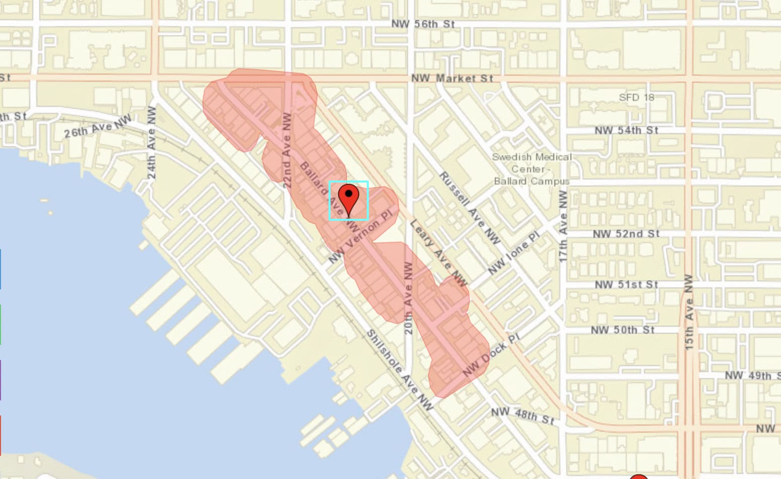 The Seattle City Light power outage map is showing a total of 188 customers currently without power along Ballard Ave from NW Market St down to Dock St. The cause of the outage is unknown, and they’re estimating that power will be restored by 6 p.m. tonight.