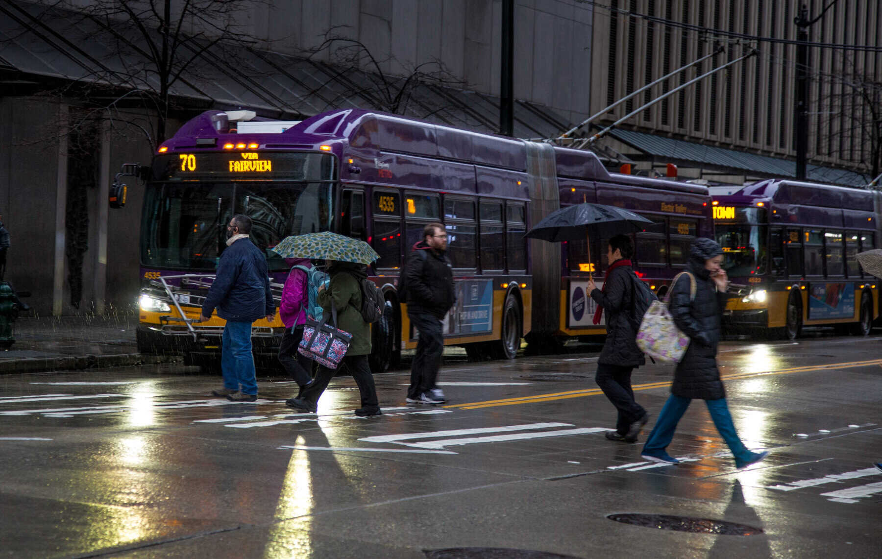 Metro says that vehicle maintenance crews have shifted away from chaining and retrieving stuck buses and have started repairs to damaged buses that operated during the storm. They are assessing the number of available buses and whether any routes may need to remain temporarily suspended as repairs are carried out.