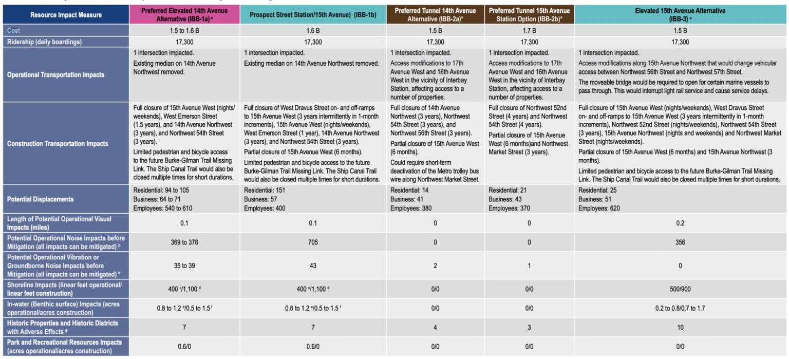 The current preferred alternative would cost $1.5-1.6 billion and would include an elevated bridge east of the Ballard Bridge, aligning along 14th Ave NW with the Ballard Station located at NW Market St and 14th Ave NW.