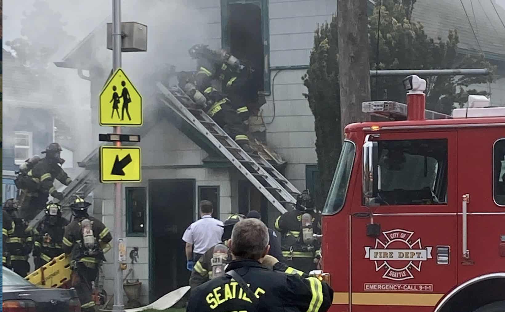 Seattle Fire responded to the scene at 9:30 a.m. and rescued the woman through a second-floor window. She was transported to Harborview in critical condition. Seattle Fire says a man was also transported to the hospital in stable condition.