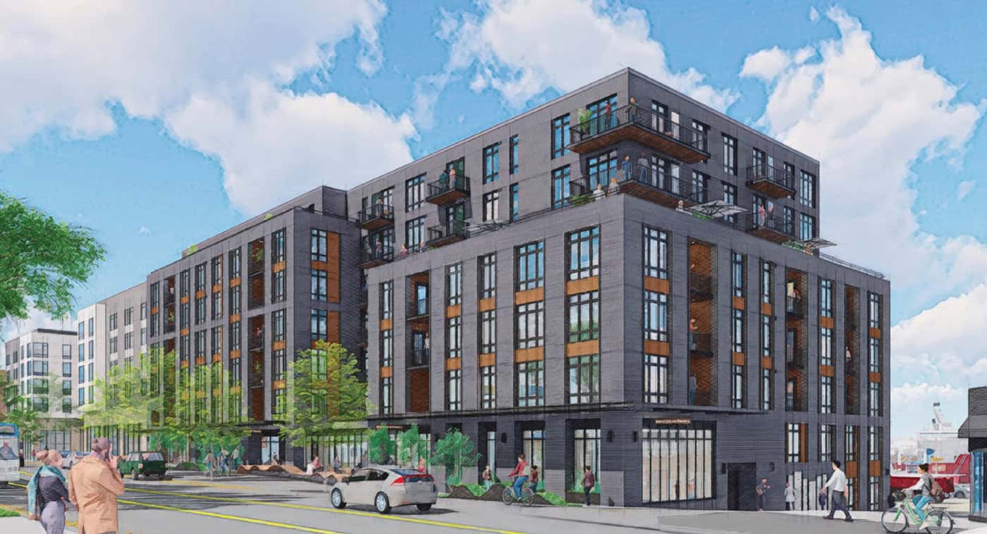 The latest design review plans haven’t yet been published online, but you can check out Mithun’s design packet from May 2021 to get a sense of the upcoming development.
