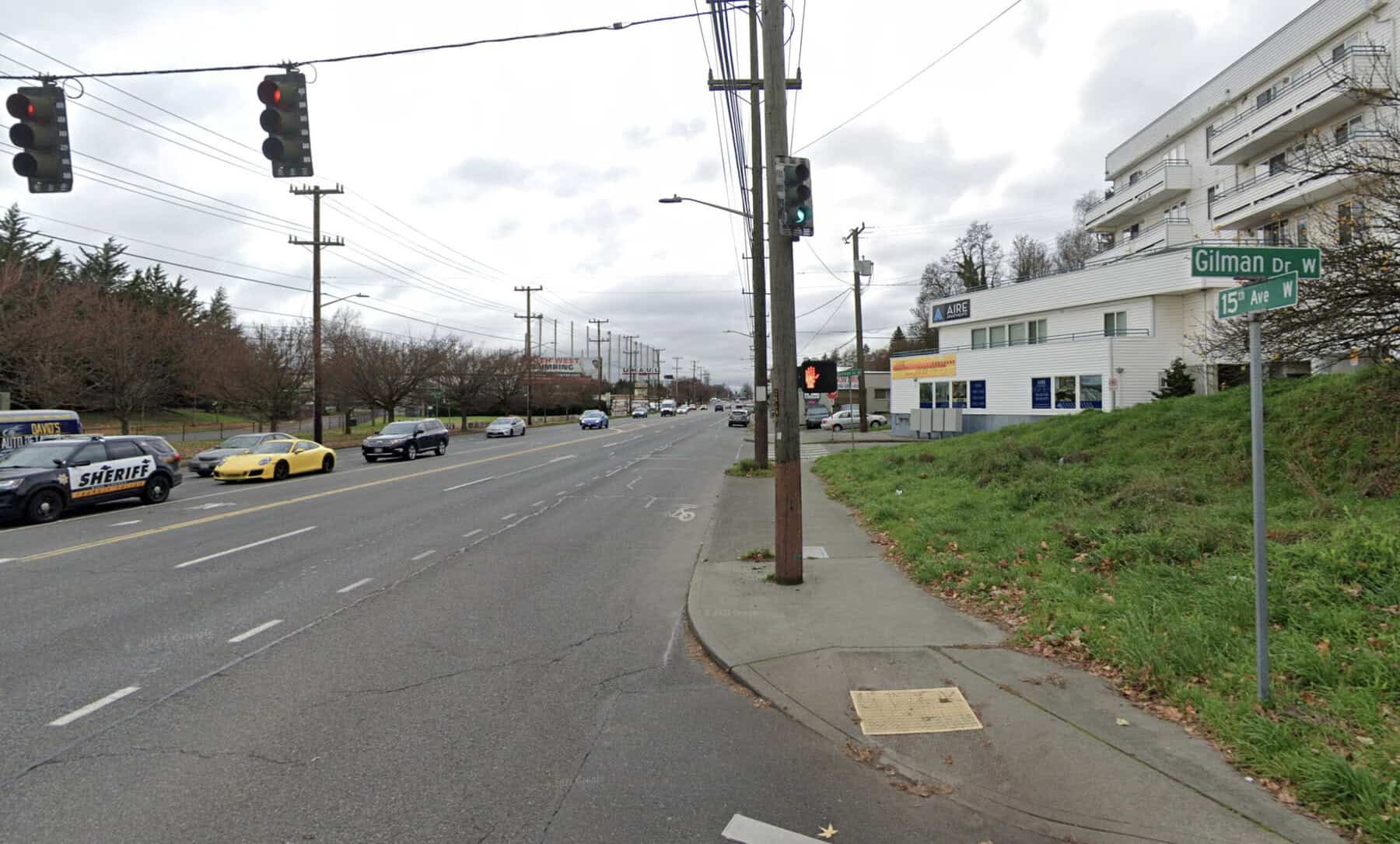 Seattle Police say the 33-year-old driver was driving northbound on 15th Ave W just before 11 p.m. when he passed another vehicle just south of Gilman Drive W, lost control of his car, and drove onto the sidewalk where he struck the pedestrian.