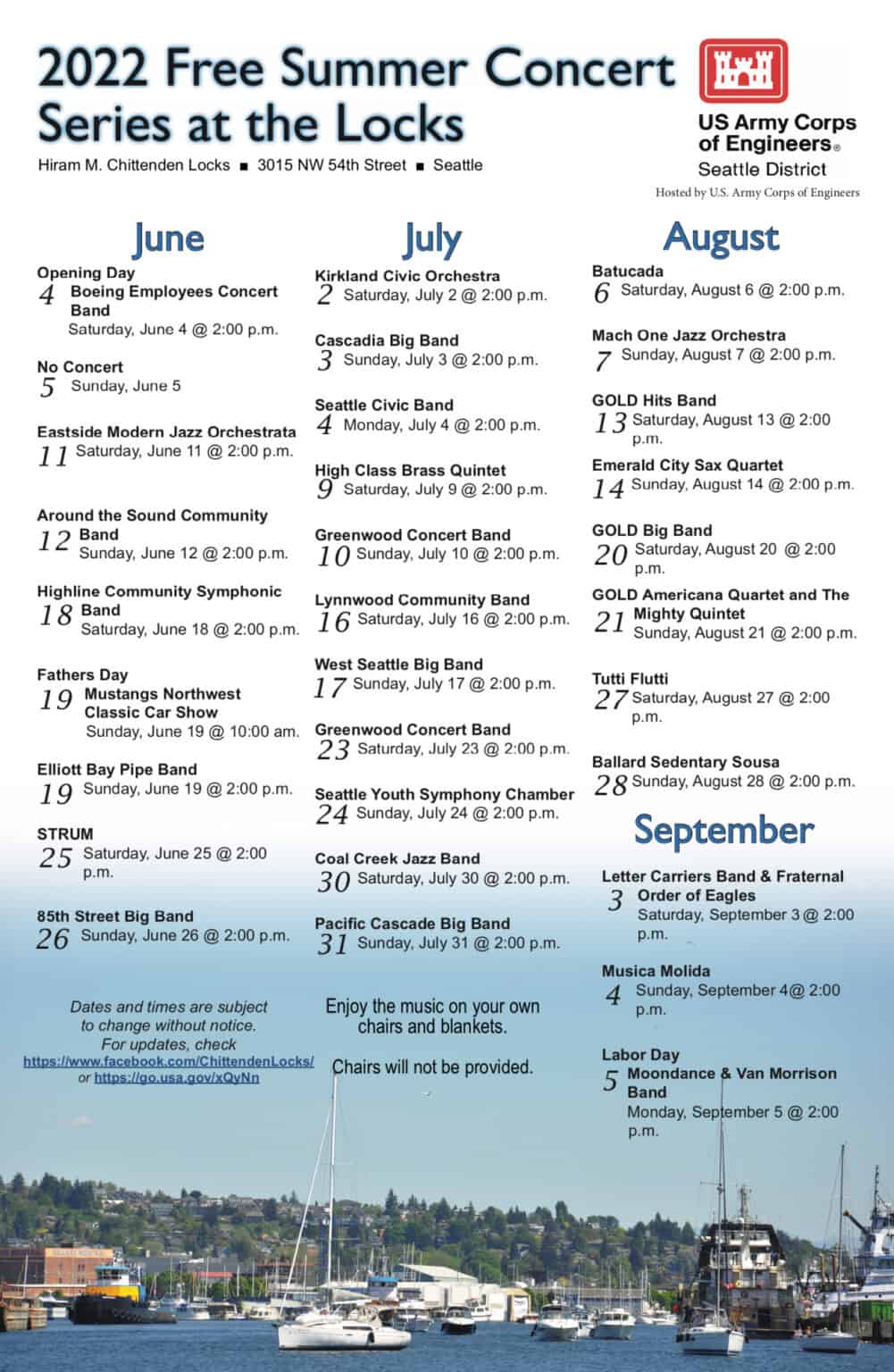 The free summer concert series is returning to the Ballard Locks this summer after pausing for two years due to the pandemic.