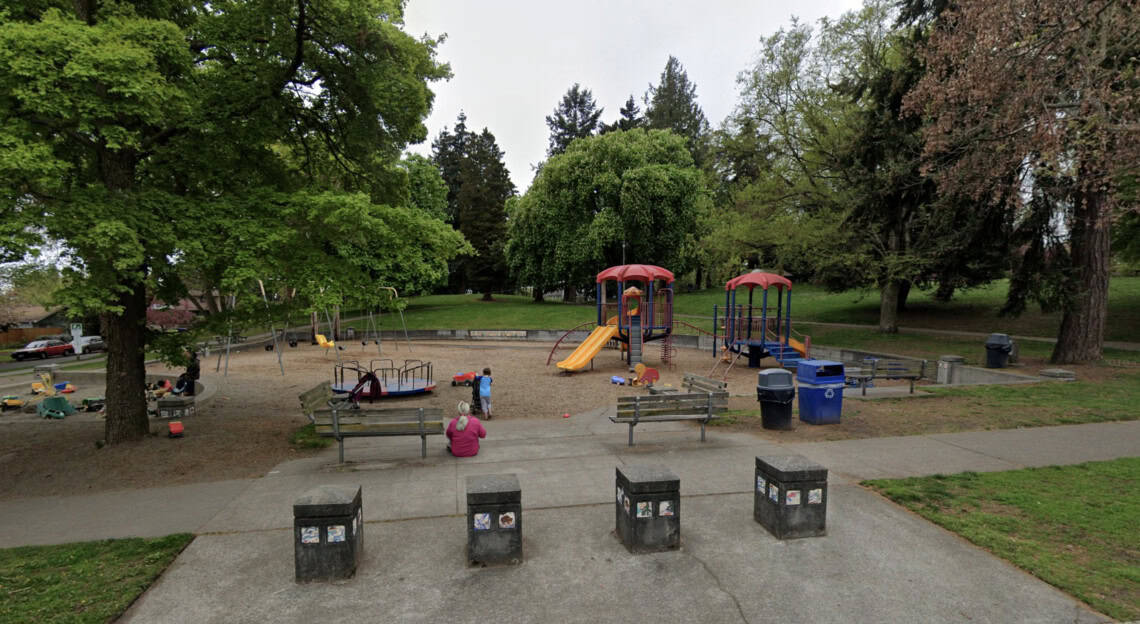 The parks department tells My Ballard that the “Woodland Explorer” proposal was selected by the community. The playground will have new equipment including structures for kids ages 2-5 and another set of structures for 5-12s, with multiple slides, a large net climber, multiple balance and climbing elements, nature-themed play panels, lop hops, swings, and a “climbable whirl.” They’ll keep the zip line in place.
