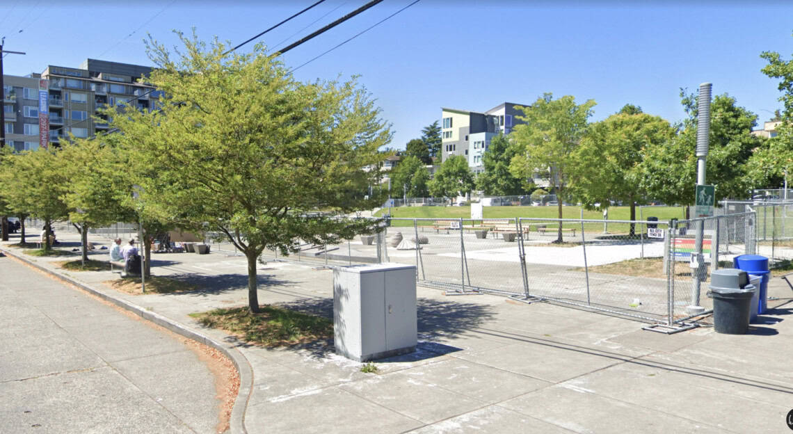 Ballard Commons closed in December 2021 following an encampment cleanup. Since then, Seattle Parks and Recreation has been conducting rehabilitation and remediation efforts including turf repair and landscaping, replacing pedestrian lighting, fixing the restroom, and updating the spray park.