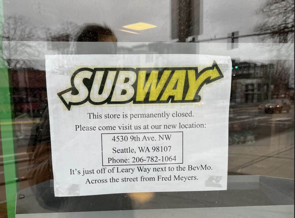 The Subway on 15th Ave NW and NW 53rd St has closed its doors.