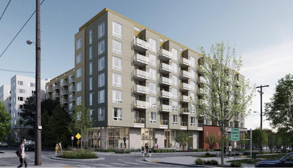There are new design plans for the large housing development going up on St. Luke’s Episcopal Church‘s property next to Ballard Commons Park.