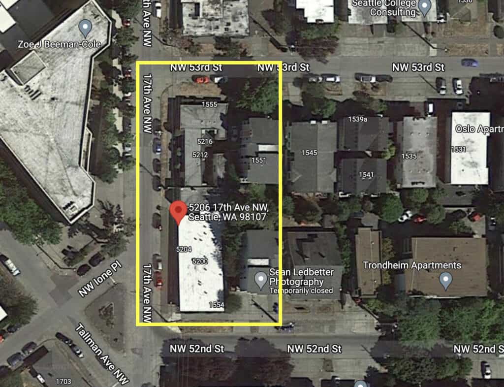 My Ballard reported on the initial plans for the project one year ago. The address for the project changed—from 5206 17th Ave NW to 1552 NW 52nd St—to reflect the updated main entrance plans.