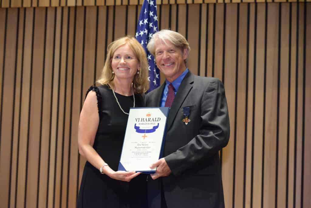 Norway’s Ambassador to the U.S. Anniken R. Krutnes presented Nelson with the honor on July 18 in a ceremony at the National Nordic Museum. Governor Jay Inslee, Viggo Forde, Honorary Consul of Norway for the Pacific Northwest, and more than 300 supporters and friends of the museum attended the ceremony.