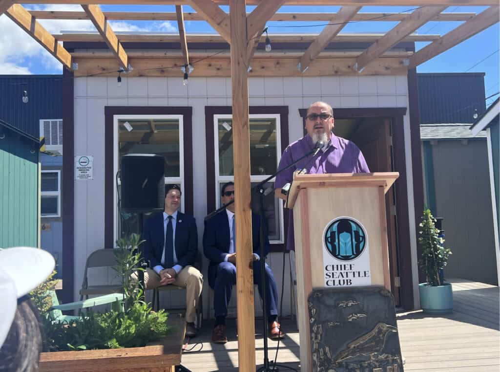 On August 11, Chief Seattle Club along with LIHI, Seattle Mayor Bruce Harrell, District 6 Councilmember Dan Strauss, and community supporters gathered to celebrate at an open house at Raven Village. The celebration included drumming, song, and a blessing from Lorna with CSC and speakers.