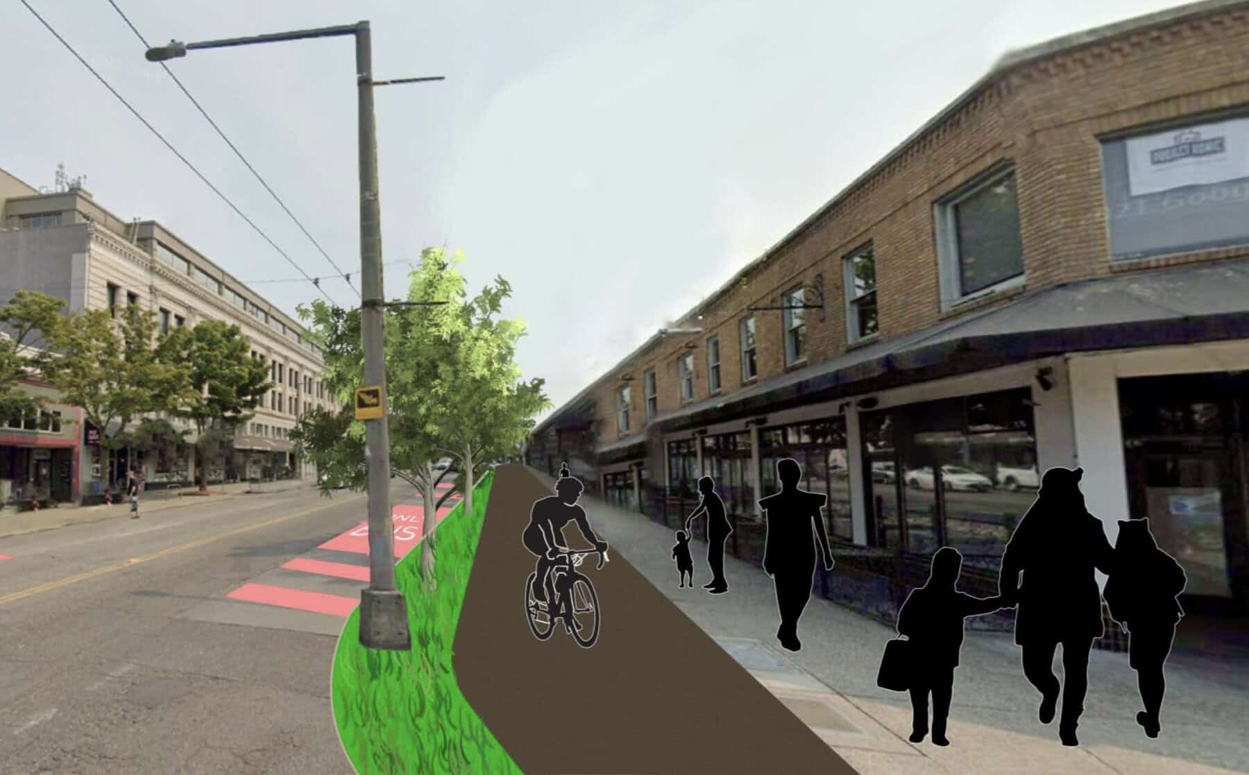 The plans also call for a 5-foot-wide minimum planting strip separating the multi-use trail from the preserved parking lane on the southwest side of Leary Ave NW.