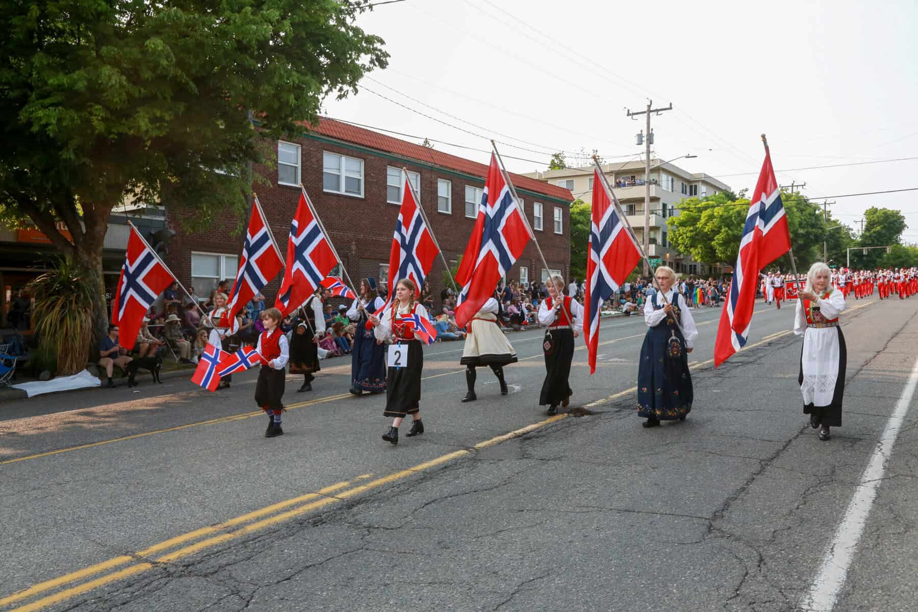 Ballard’s 17th of May parade is always a big one: Thousands descend on Ballard for the event, which starts at 6 p.m. at NW 62nd St and 24th Ave NW. It then travels south on 24th Ave NW to NW Market St, then travels east to Bergen Place where it turns right onto 22nd Ave NW, and then continues southeast on Ballard Ave to its end at Ballard Ave and Ione (see map below).