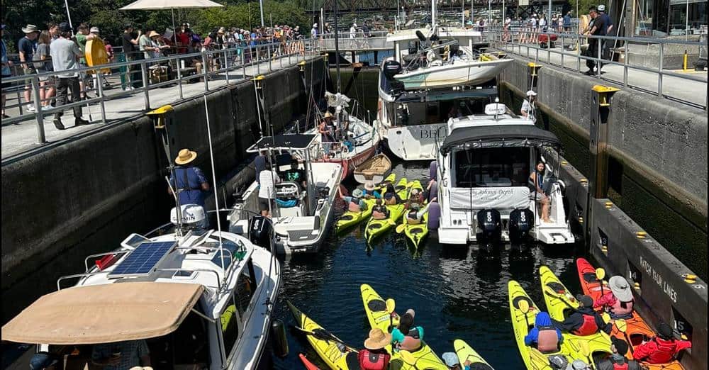 Recreational vessels going through the Ballard Locks may have to wait longer than usual to get through due to falling water levels in the Lake Washington Ship Canal.