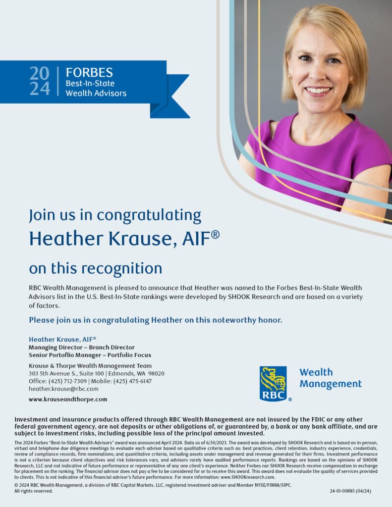 Heather Krause named Forbes Best-in-State Wealth Advisor 09/27/2024 by RBC Wealth Management This is a sponsored post