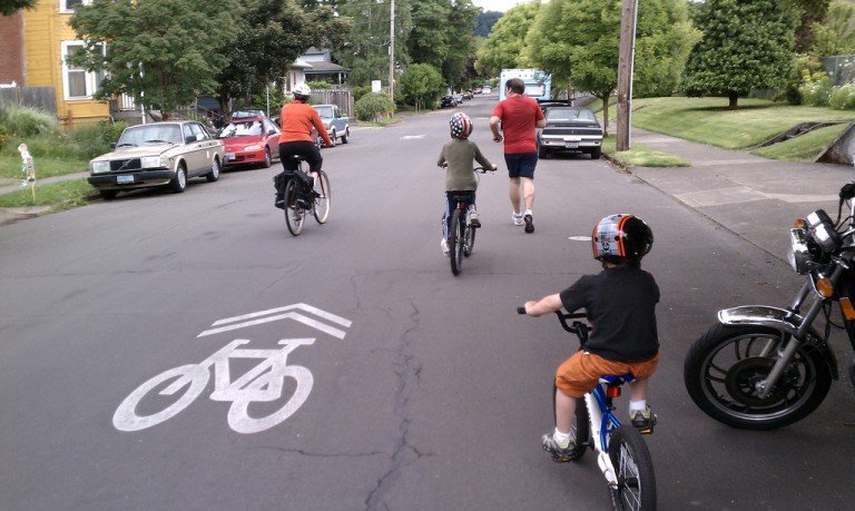 A neighborhood greenway is a city street with traffic-calming measures to make it easier for people to walk and bike. Seattle has a network of neighborhood greenways—there’s also one on 28th Ave NW in Ballard.
