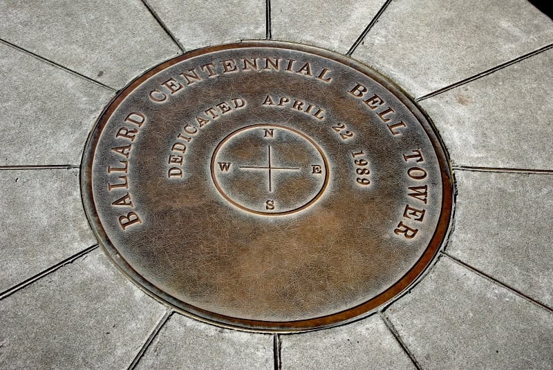 The Ballard Centennial Bell Tower bronze marker went missing in mid-October. In an email to the Seattle Parks Department, Councilmember Dan Strauss’s office, and the Ballard Alliance, Anthony Salazar and Laura Cooper appealed for help to replace it.