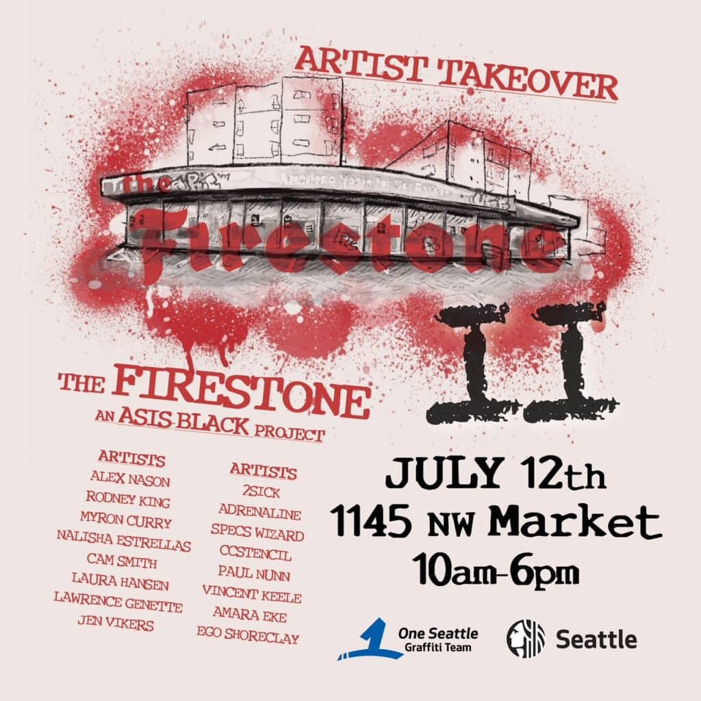 Dubbed The Firestone, Seattle-based artists Aaron Asis and Brady Black launched the initiative with support from the City of Seattle and the One Seattle Graffiti Plan. Its goal, Black says, is to invite the public “to think about buildings, public spaces, and the impact of art in our city.”