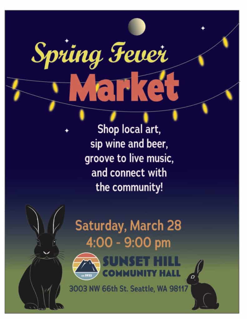 “A few of us Ballard creatives started the DIY Art Club at the Sunset Hill Community Hall last year, and the creative spirit took over and things grew from there,” Stern said. “We love this building and the community that’s growing within it, and wanted to do something that gave back to it. It felt like a natural extension to dream up something bigger — an event that celebrates spring, showcases local art and music, and helps support the hall. I’m excited to be part of the team bringing this event to life, and to participate as an artist vendor also. It’s going to be a pretty festive night!”