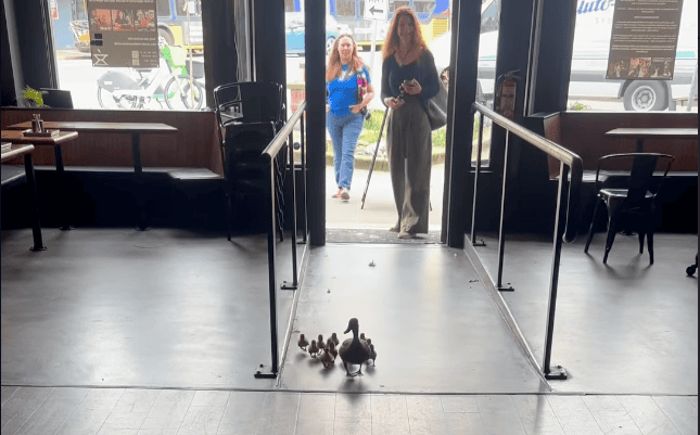The ducks wandered in through the front door, and thanks to a very attentive shopkeeper, were escorted through the back door to the alley beyond.