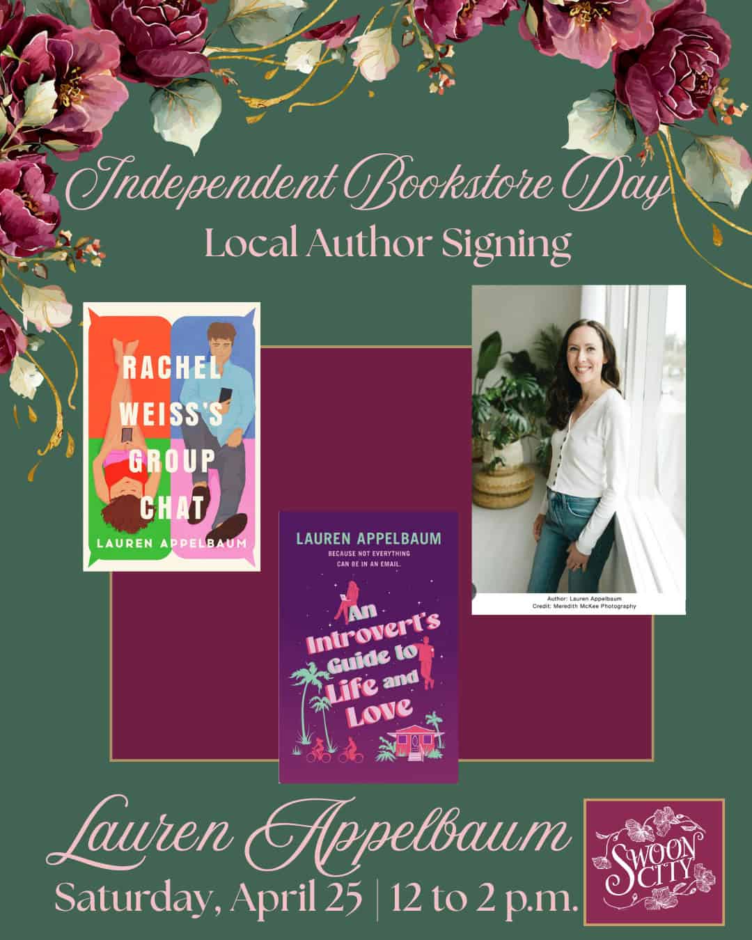 Swoon City 1716 NW Market St, Seattle, WA, United StatesSo thrilled to welcome Lauren Appelbaum to Swoon City to sign books on Saturday 4/25 from noon to 2:00 pm. About her books AN INTROVERT'S GUIDE TO LIFE AND LOVE Inheriting a seaside cottage comes with strings attached in this touching romance where an introverted remote worker must leave her city apartment and learn to ...